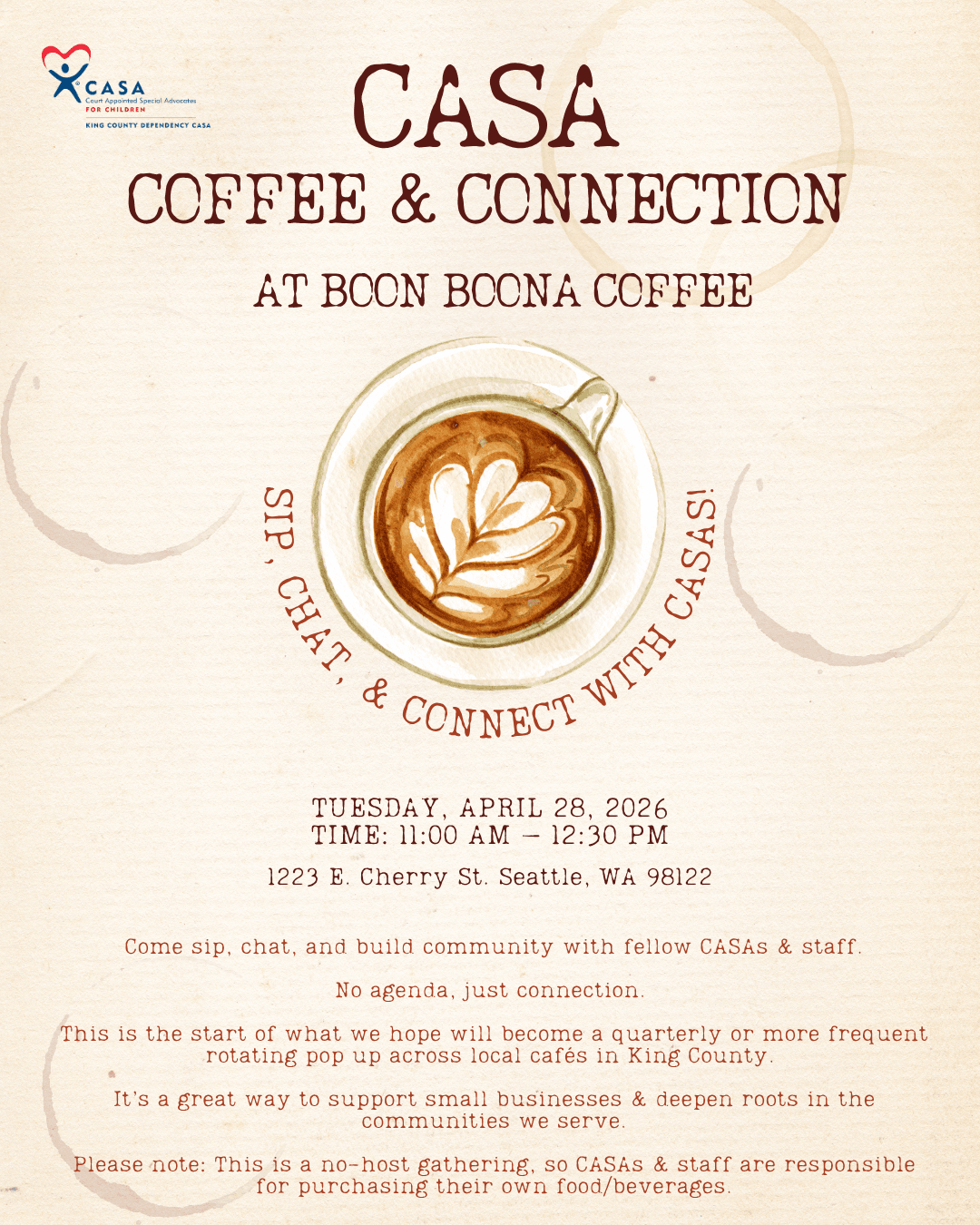 This event is for current CASAs only at this time. If you are not a current CASA, please look out for future Coffee with a CASA events later in 2026.